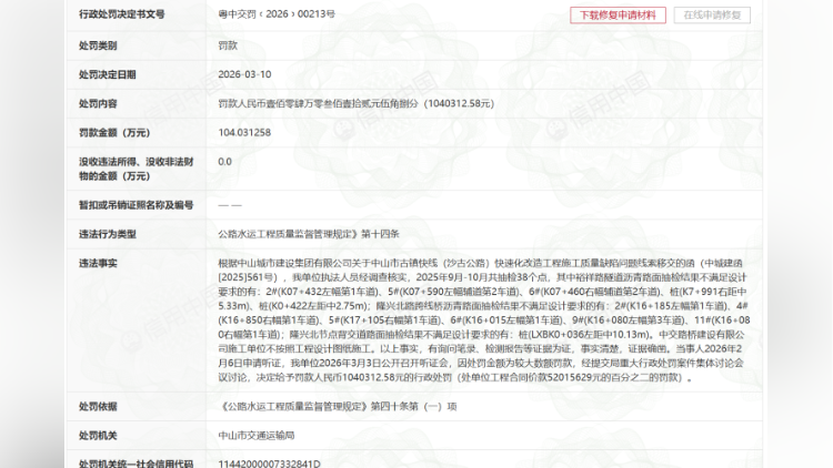 不按照工程设计图纸施工,中交路建被罚超百万元